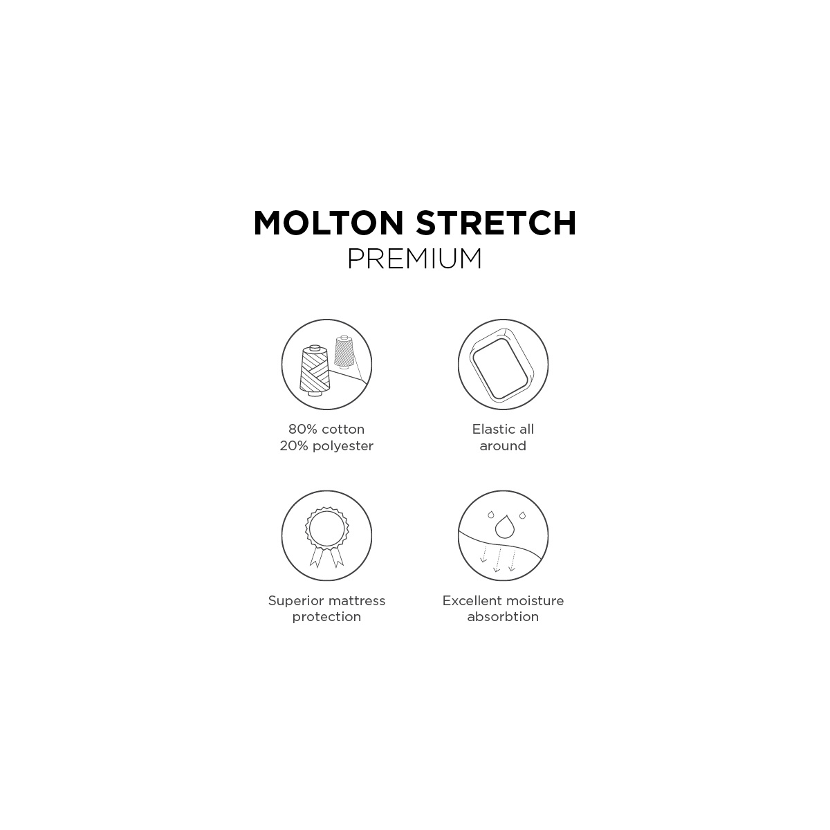 Een molton biedt je matras extra bescherming tegen vocht, vuil en slijtage, waardoor je matras langer meegaat en hygiënisch blijft. Deze premium kwaliteit neemt bovendien extra vocht op, zodat je droog en comfortabel slaapt. Daarnaast zorgt een molton voor een zachtere, comfortabelere ondergrond, waardoor je slaapkwaliteit verbetert. De stretchkwaliteit en zachte katoen zorgen voor een perfecte pasvorm, terwijl de polyestervezels extra duurzaamheid bieden.
