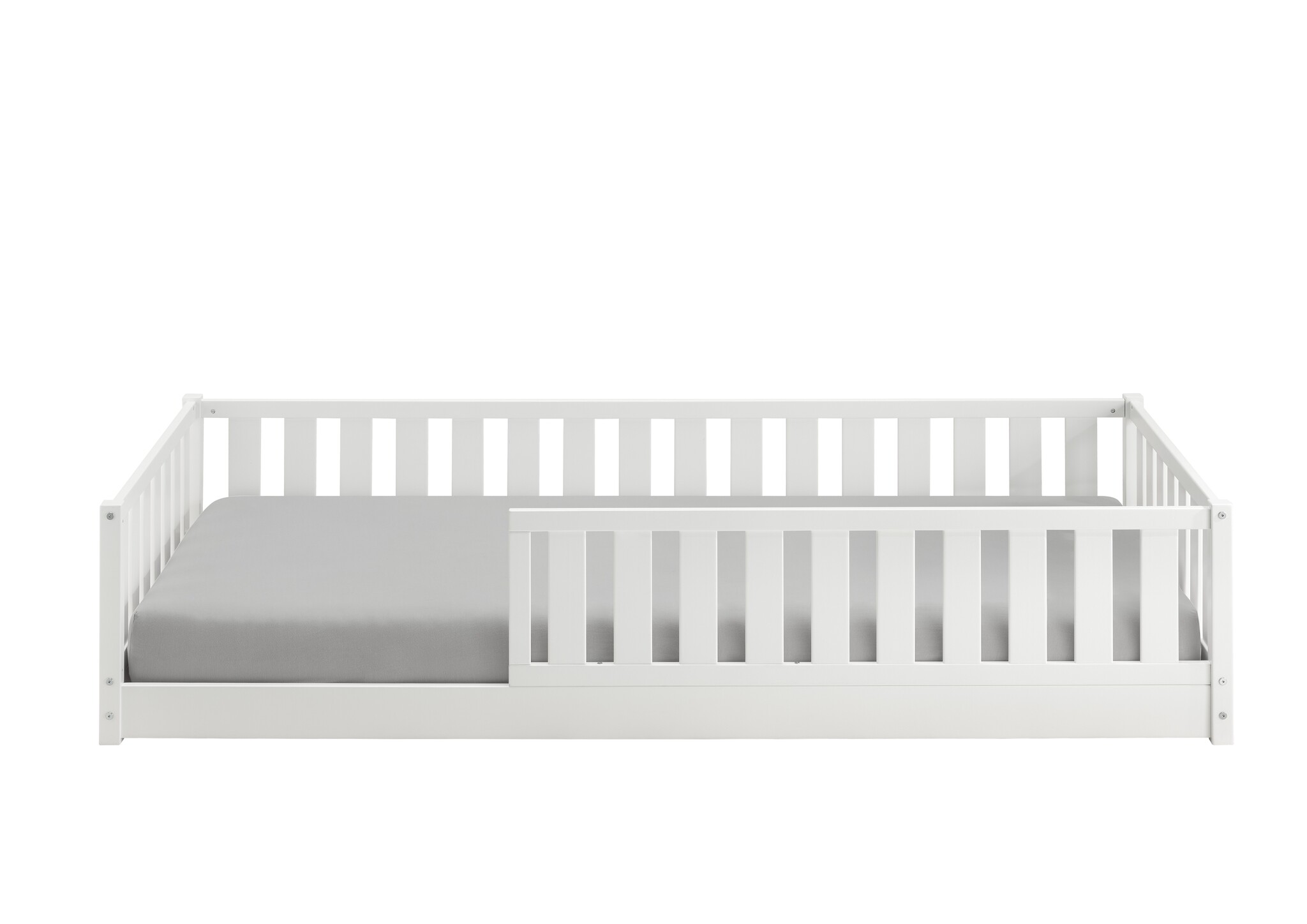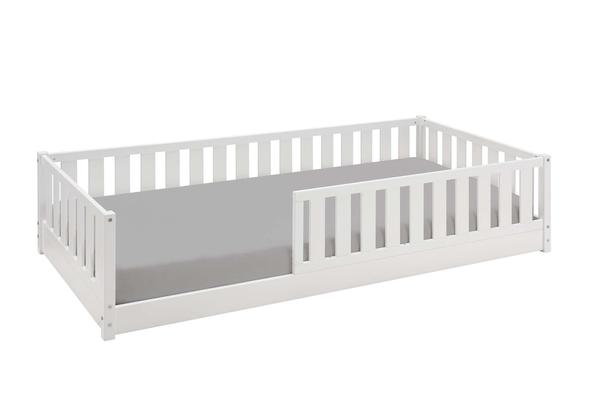 Met een lage instap (want: peutervriendelijk), een uitvalbescherming die je zowel links als rechts kunt plaatsen, en een design waar zelfs volwassenen stiekem jaloers op zijn, is vloerbed Noah niet zomaar een kinderbed. Het is een veilige plek. Een eigen plekje. Een mini-thuis.