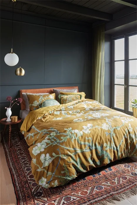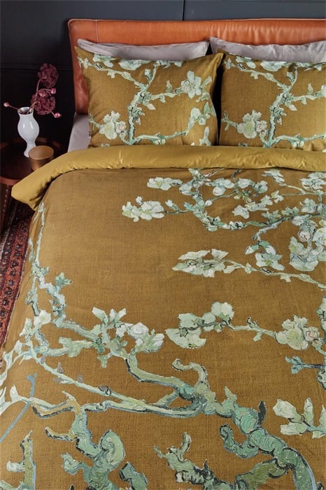 Breng rust, natuur en kunst samen in je slaapkamer met het Blossoming – Green dekbedovertrek uit de exclusieve Beddinghouse x Van Gogh Museum collectie. Het ontwerp is geïnspireerd op Van Goghs wereldberoemde schilderij Bloeiende Amandelbloesem – een symbool van nieuw leven en hoop. De zachte amandelbloesems tegen de ochre achtergrond zorgen voor een kalme, verfijnde sfeer in je interieur.