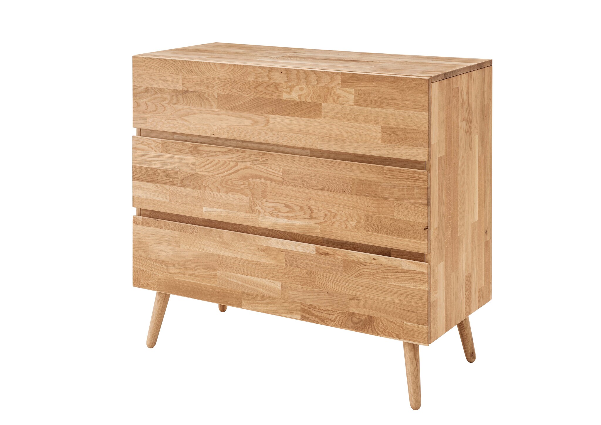 Bijpassende commode met 3 softclose laden met ronde poten.