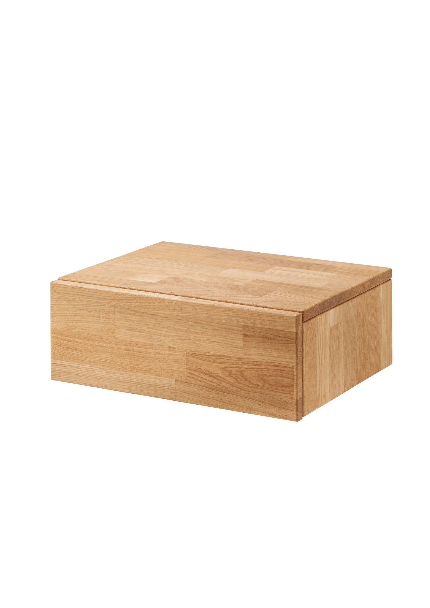 De laden zijn eveneens gemaakt van massief wild eiken hout, enkel de bodemplaten bestaan uit multiplex hout.