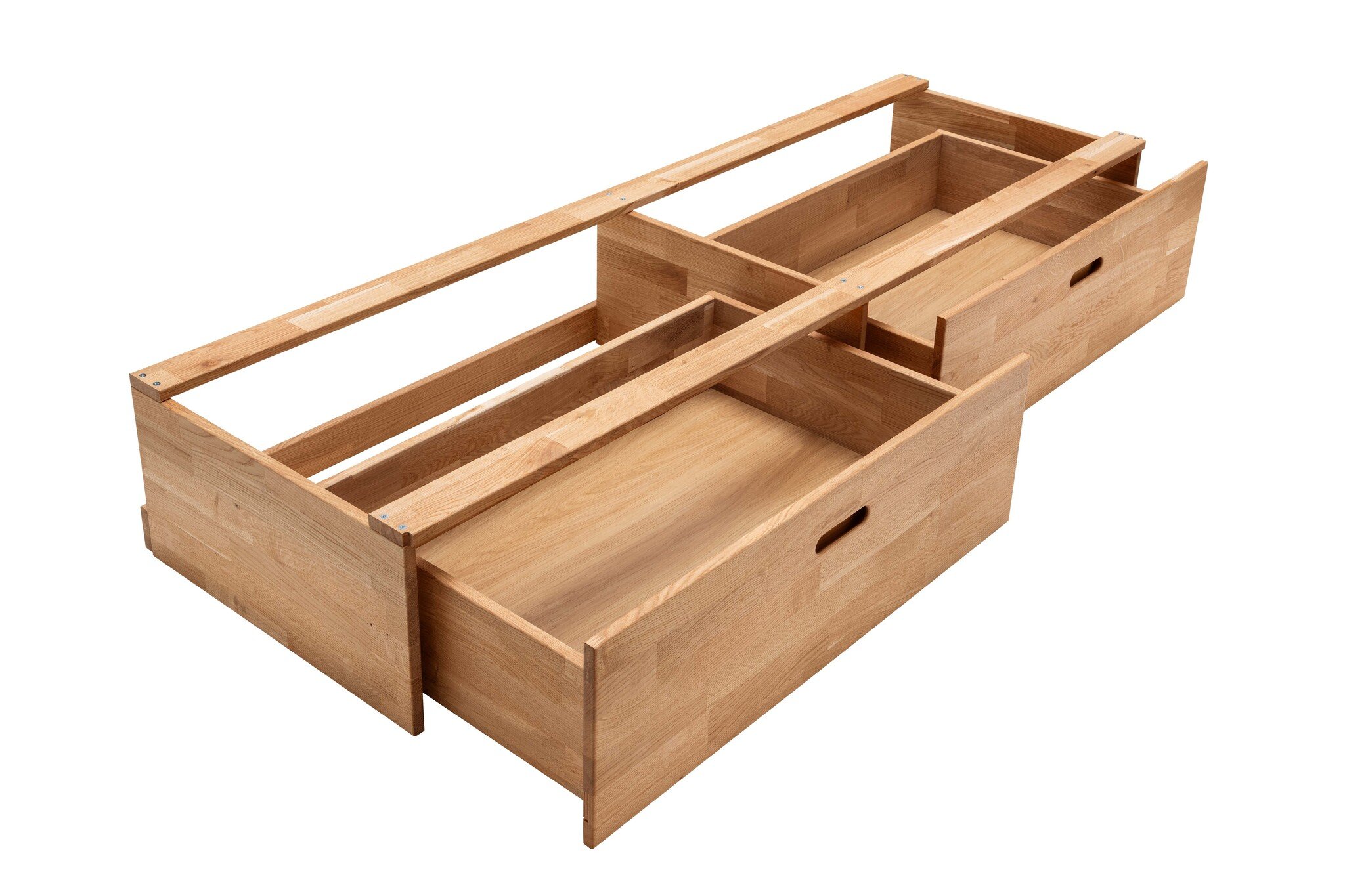 Kies uit links, rechts of aan beide bedzijdes. De lades zijn inclusief wieltjes en ingefreesde handgreep.