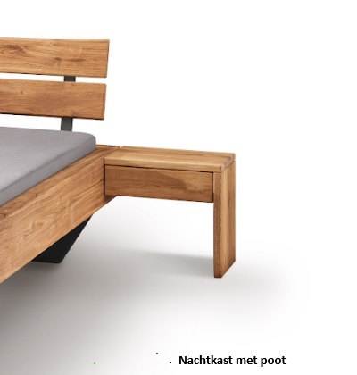 - Het bed wordt standaard geleverd met hoofdbord van "boomkant" en ''poten'' (Sleden poot 2st. van metaal)