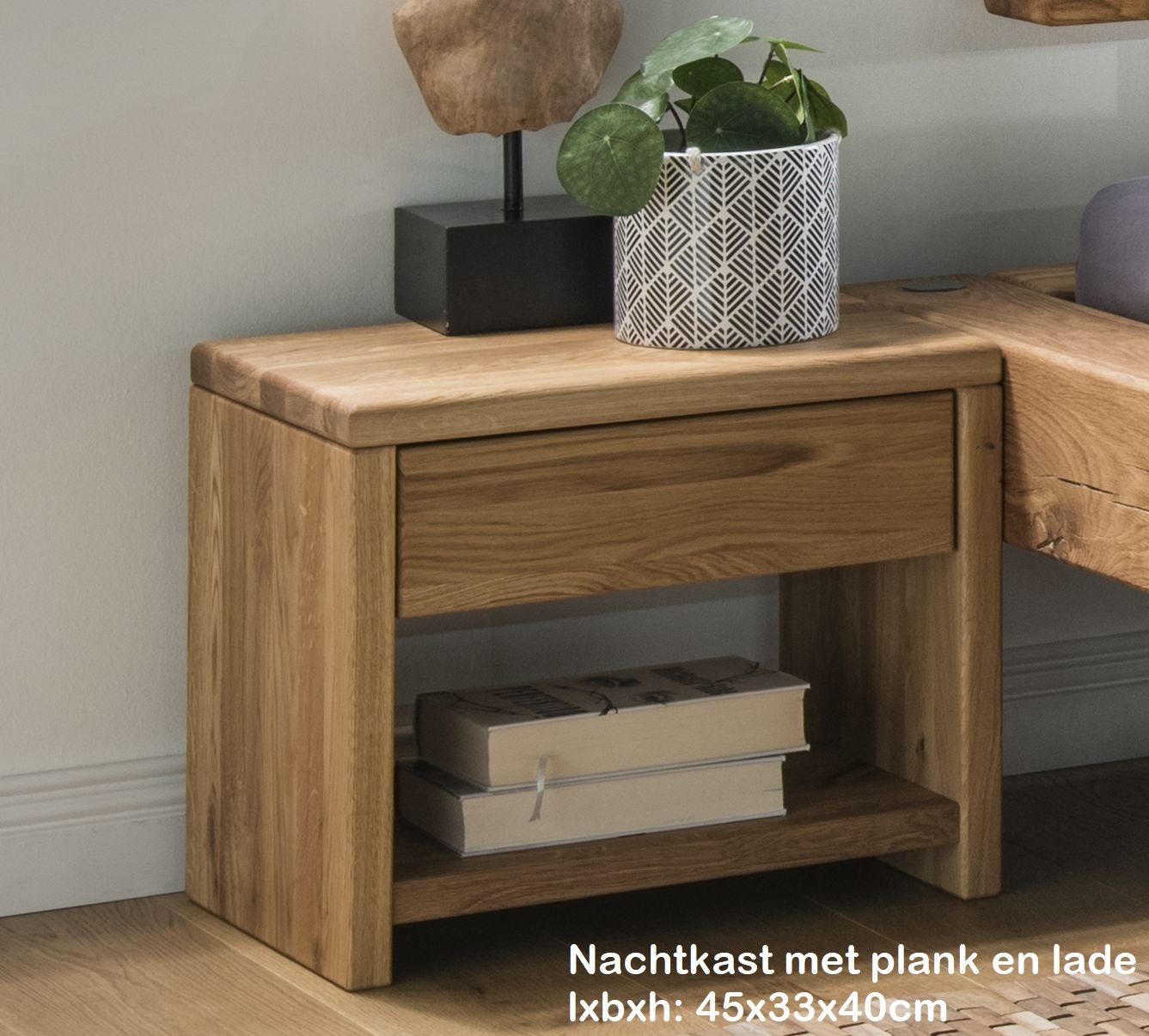 Nachtkast met opbergplank en lade- 45 cm breed, 33 cm diep en 45 cm hoog