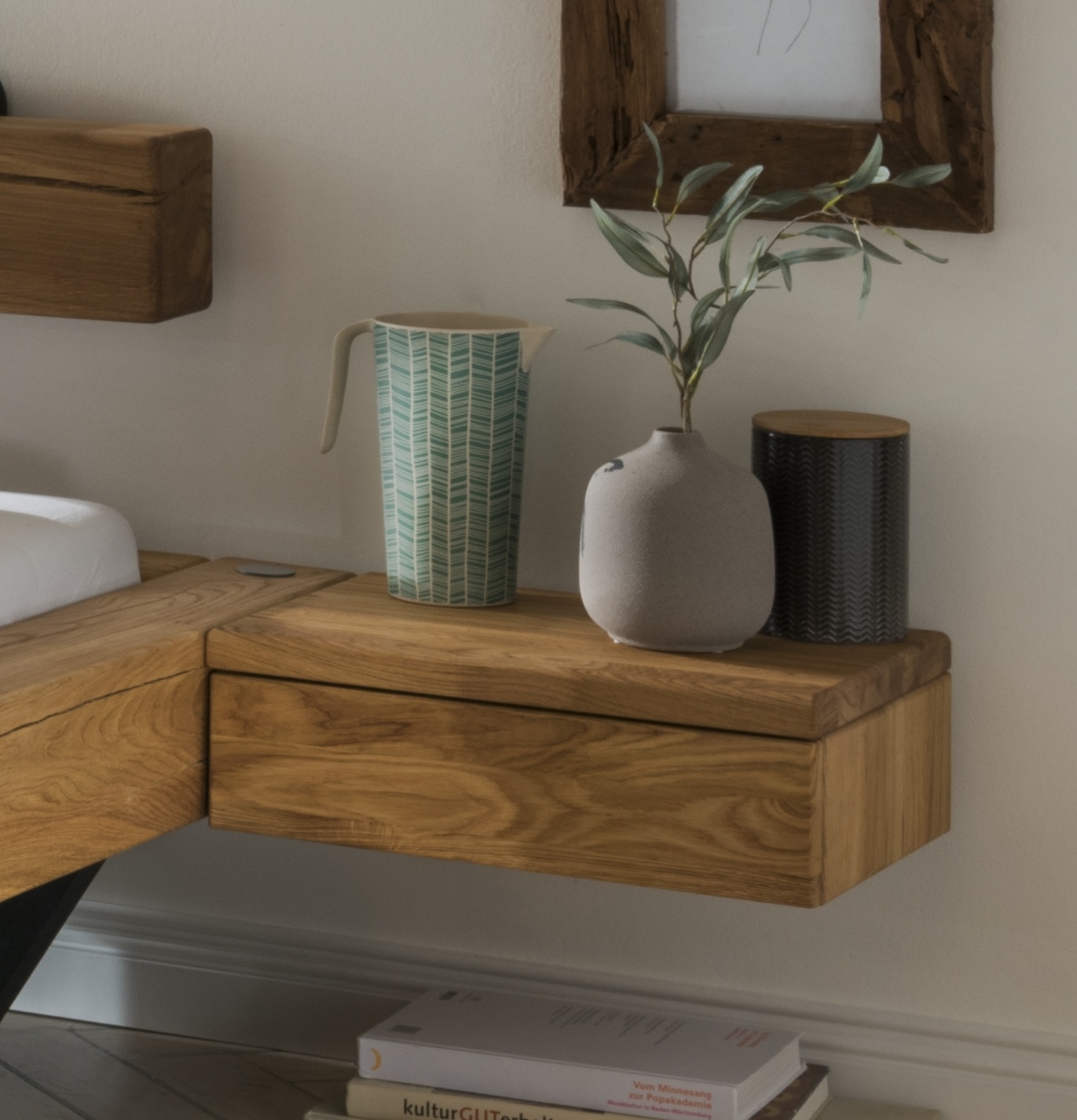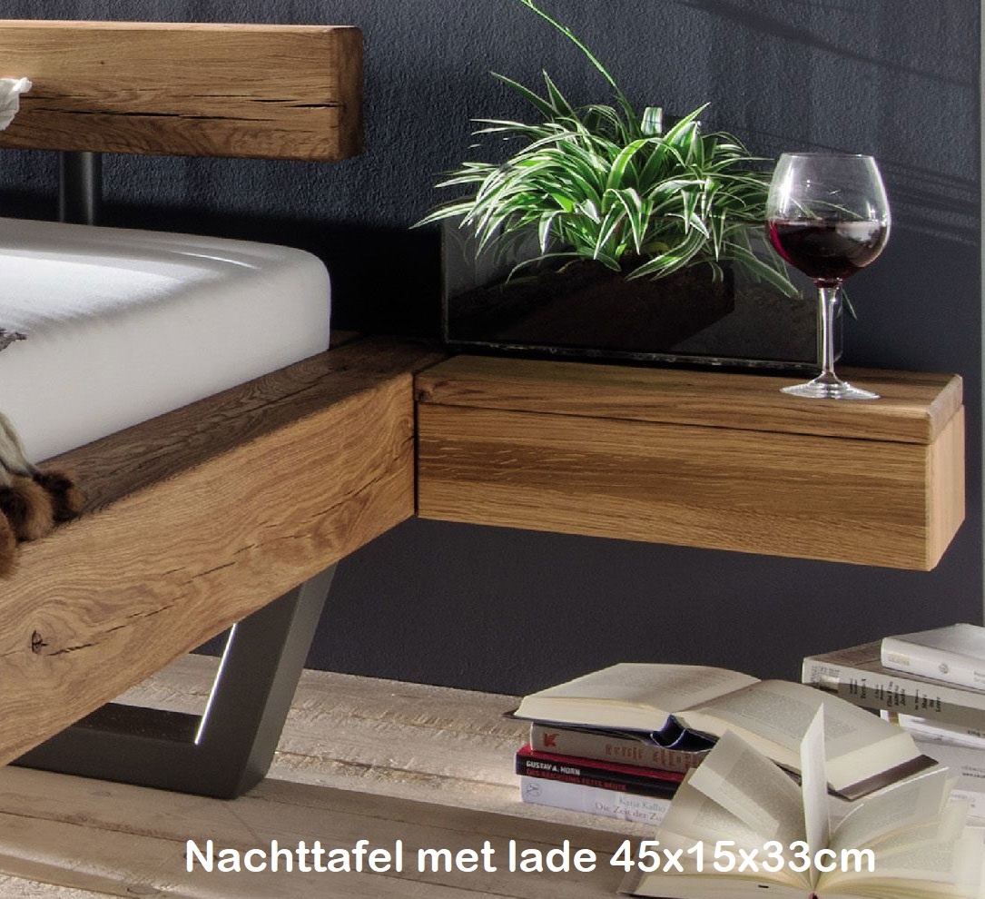 Zwevend Nachttafel met lade voor je leeswerk (of glas wijn:)- 45 cm breed, 33 cm diep en 15 cm hoog