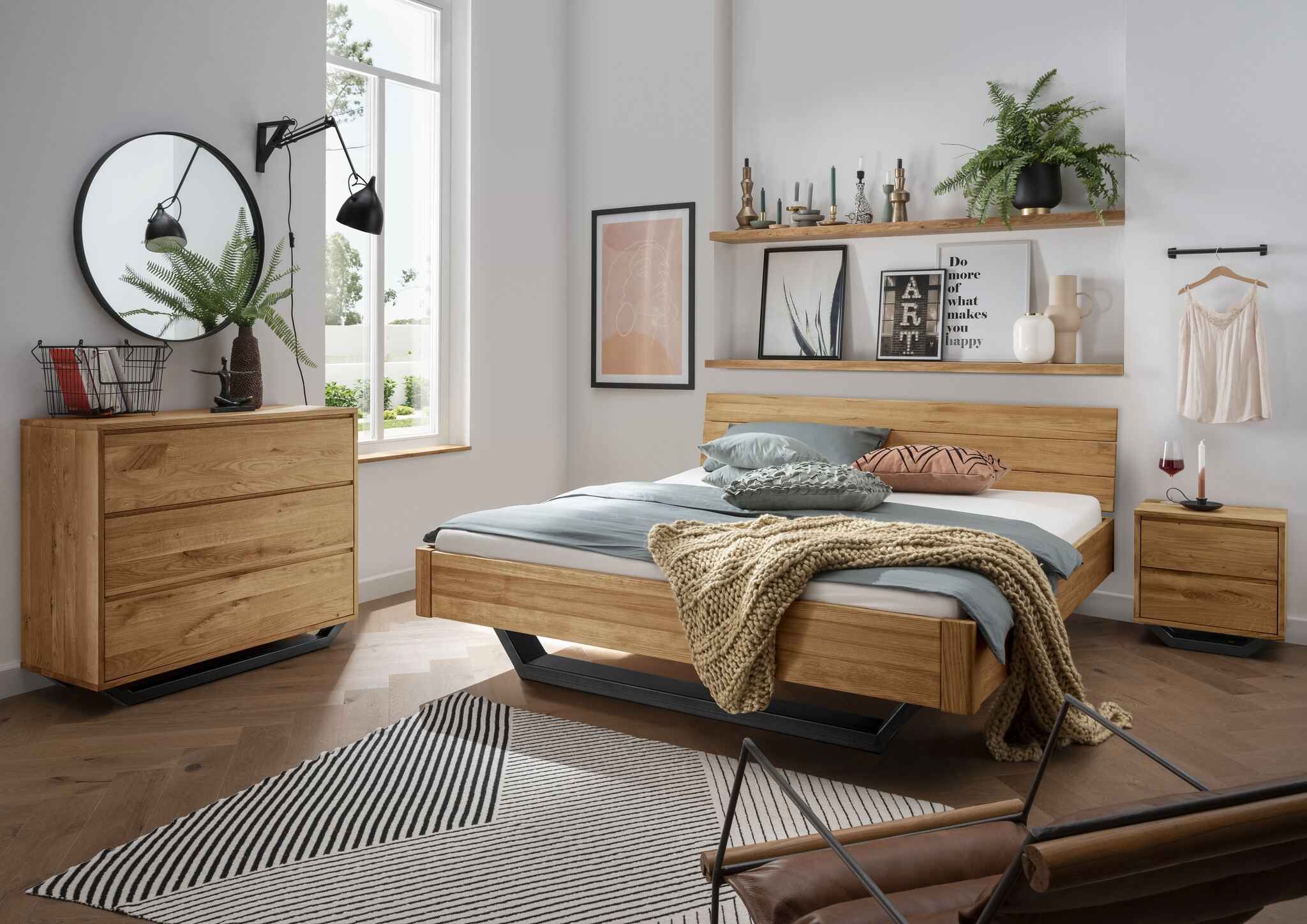 Prachtig Industrieel eiken bed Vienna van het Duitse topmerk TPT Möbel.