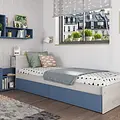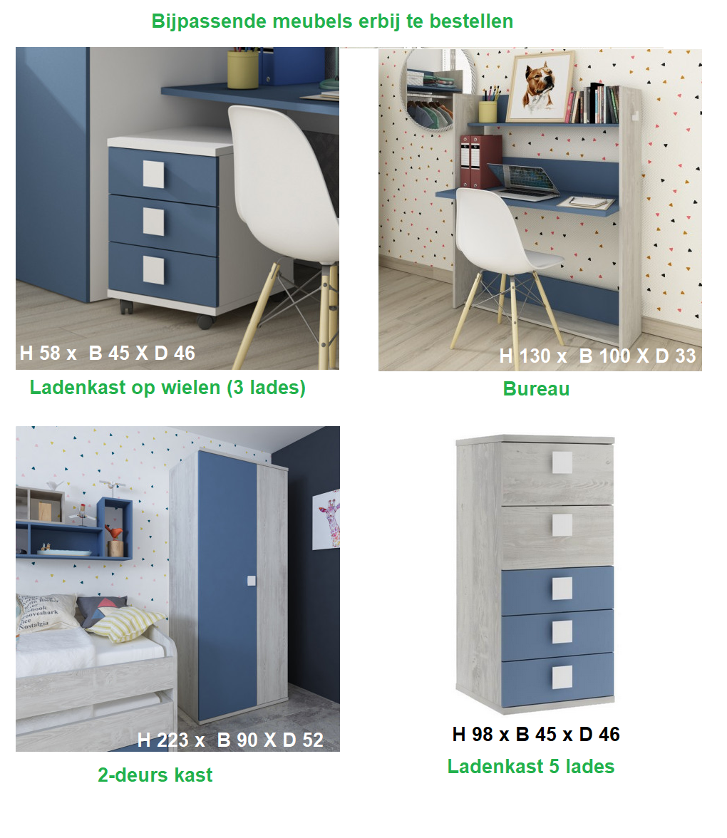 Kinderbed Jazz 90x200 cm met lades- Blauw/witgrenen