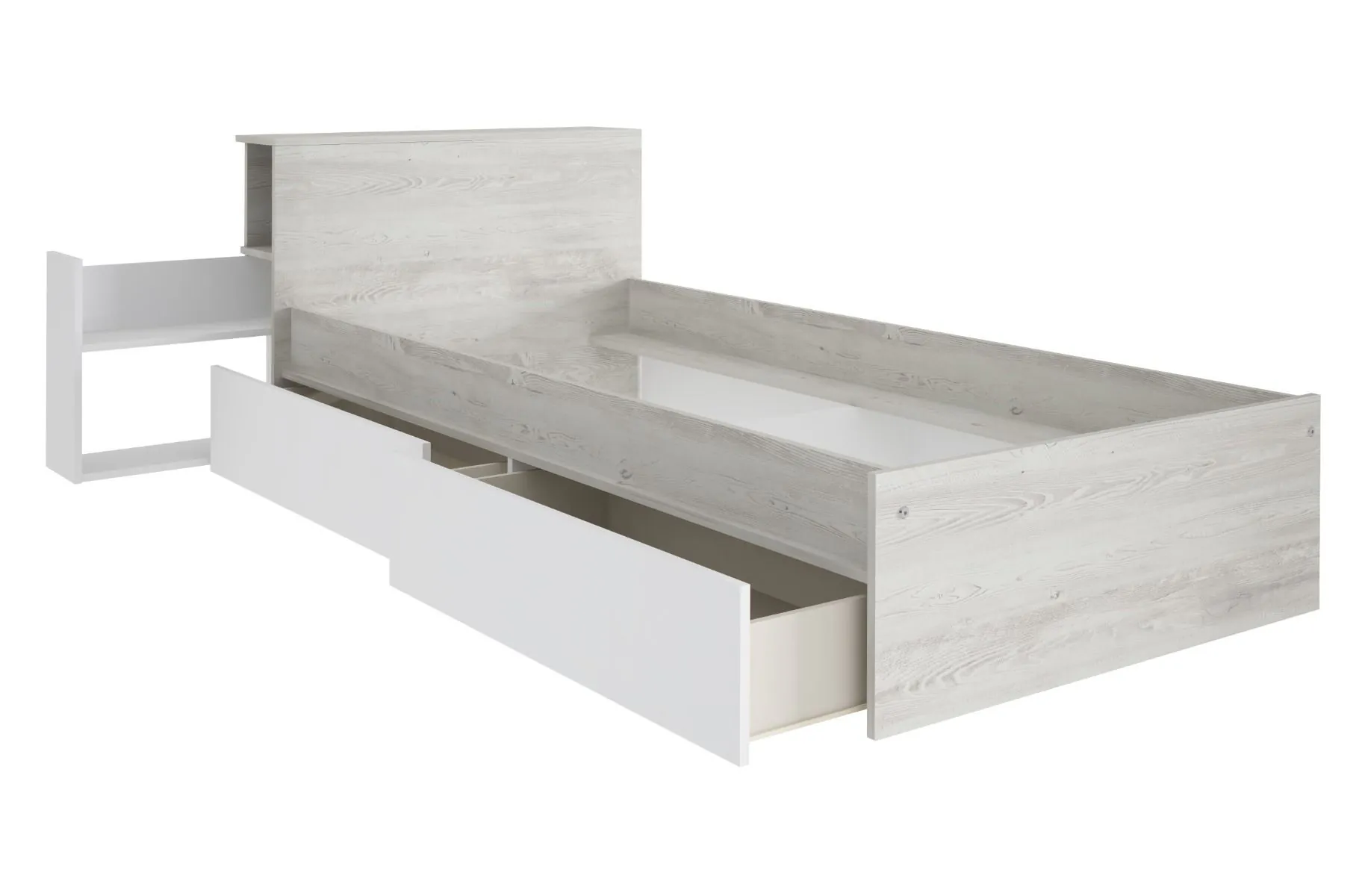 Kinderbed Jazz 90x200 cm met lades- Wit/Witgrenen