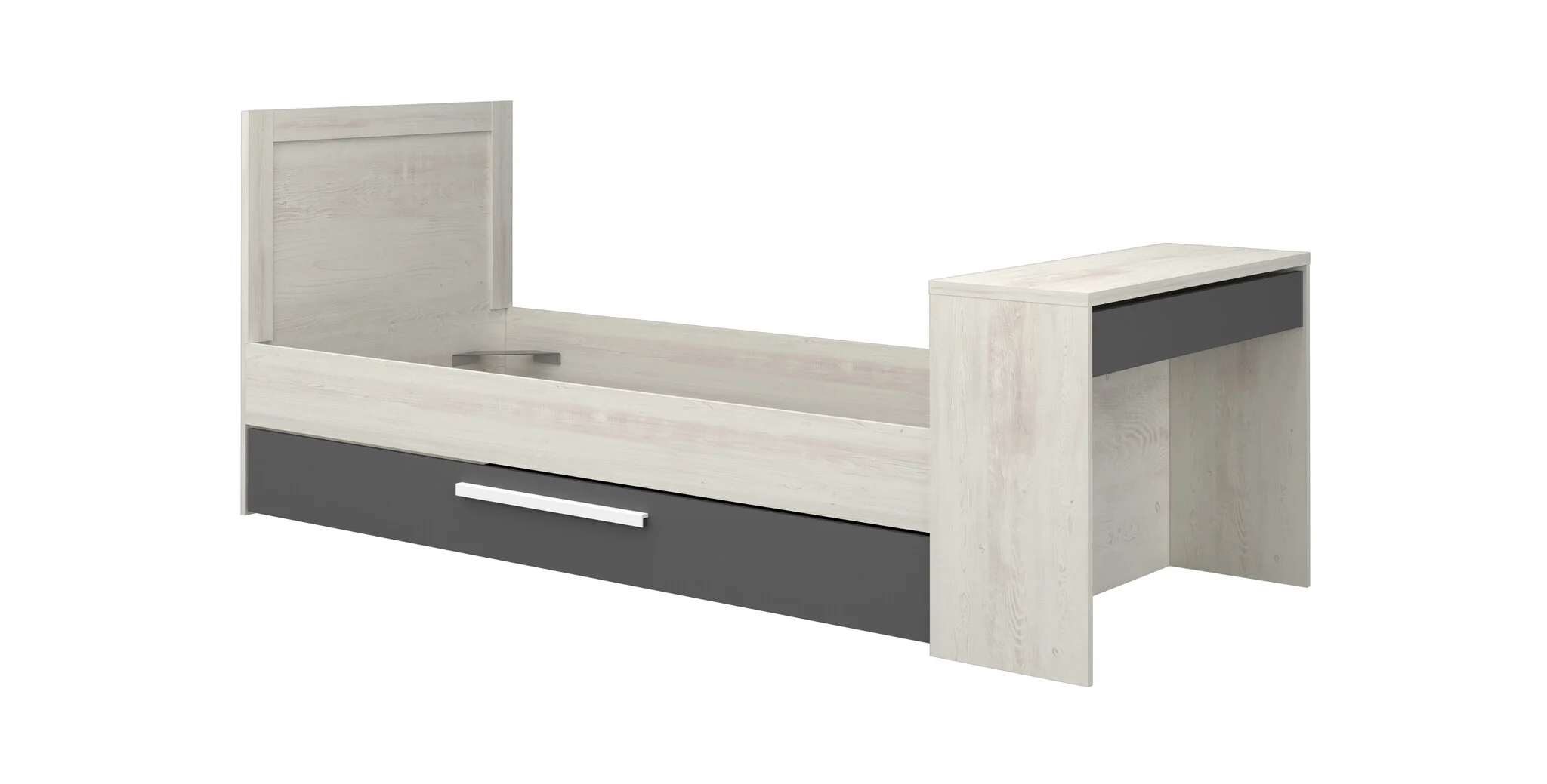 Het bed is gemaakt van duurzame materialen, zodat je kind jarenlang kan genieten van een veilig en comfortabel slaapplekje. Dankzij de handige slaaplade kun je extra spullen opbergen of een logeerbed creëren voor vriendjes of familie. Let op: een lattenbodem moet apart besteld worden.