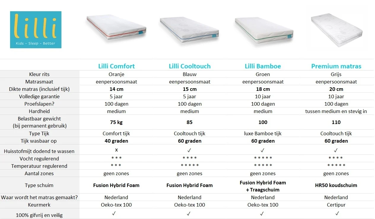 Wil je meer details? Klik dan even door naar de productpagina van de kindermatrassen voor uitgebreide informatie.