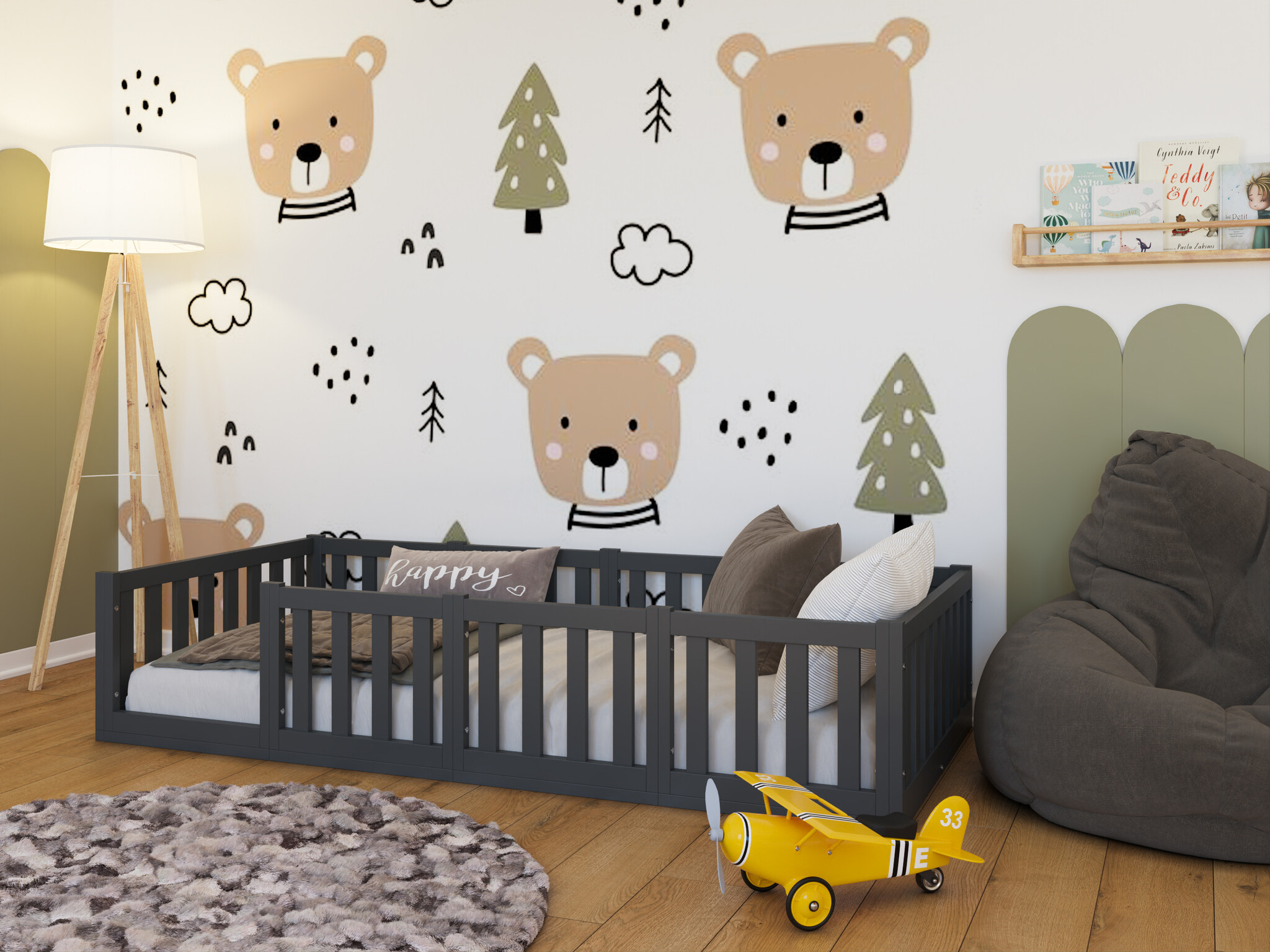 Het Luna bodembed (ook bekend als vloerbed of Montessori-bed) van 90x200 cm is perfect als peuter- of kinderbed. De balustrades voorkomen dat je kleintje uit bed rolt, terwijl de lage instap ervoor zorgt dat je kind zelfstandig in en uit bed kan stappen.