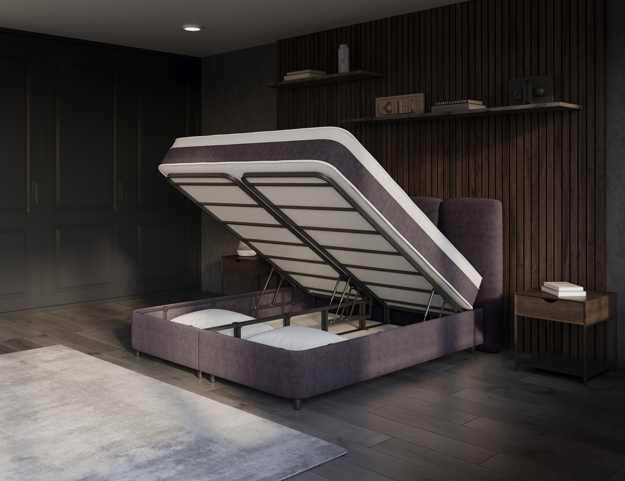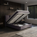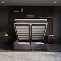 Onder de onderboxen vind je 200 cm aan royale opbergruimte, eenvoudig te openen via vier krachtige gasveren van 1000 newton. Met stevige handvaten en een duurzame, met carbon gelegeerde metalen constructie blijft alles stabiel en veilig. Berg je extra dekens, kussens of seizoenskleding op zonder dat het ten koste gaat van de uitstraling van je slaapkamer.