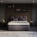 De antracietkleurige Nano-stof in combinatie met het elegante Japandi-hoofdbord geeft deze boxspring Allure een stijlvolle uitstraling