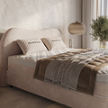 De afgeronde vormen van het hoofdbord geeft de boxspring Arcus een speelse maar toch een verfijnde uitstraling in de slaapkamer.