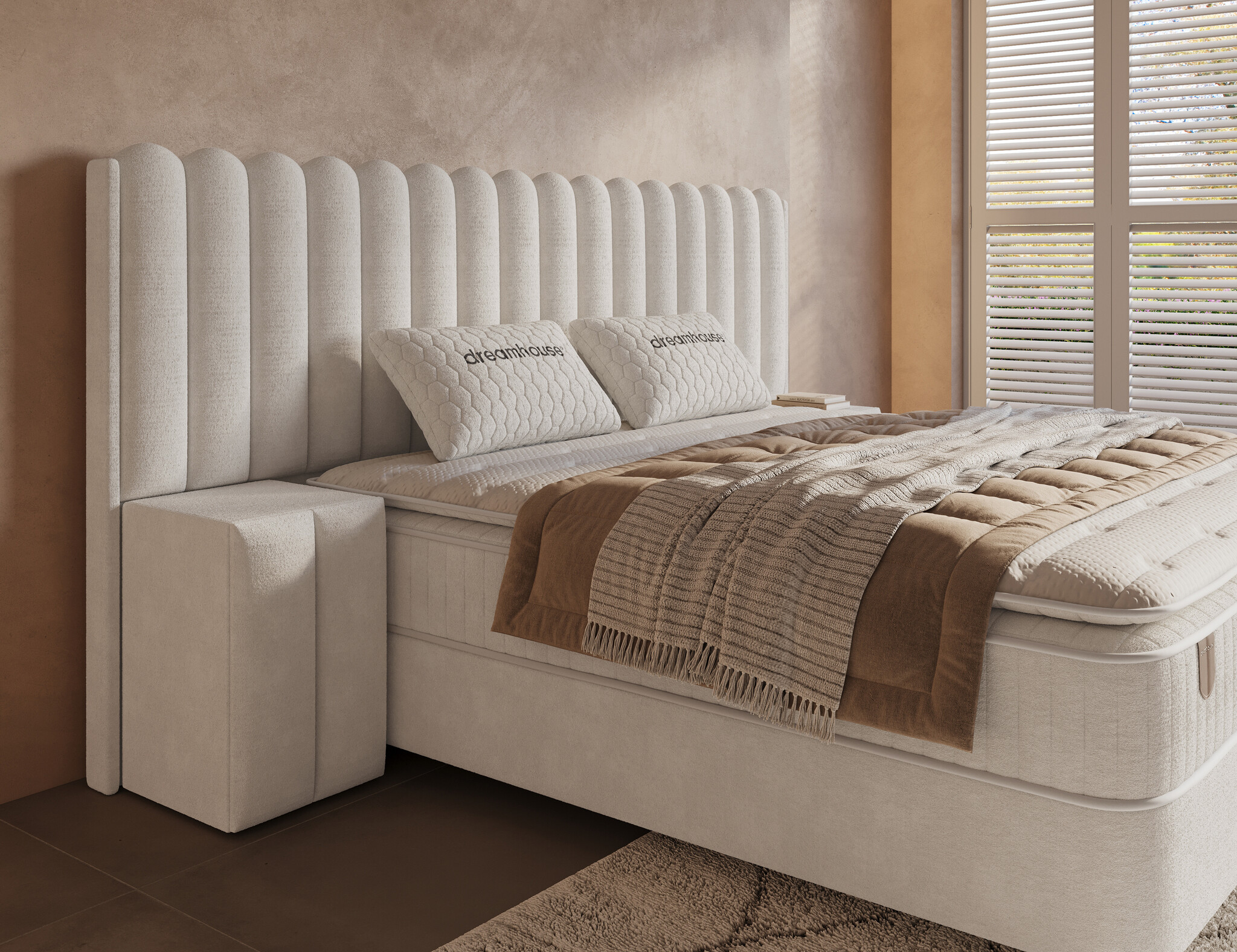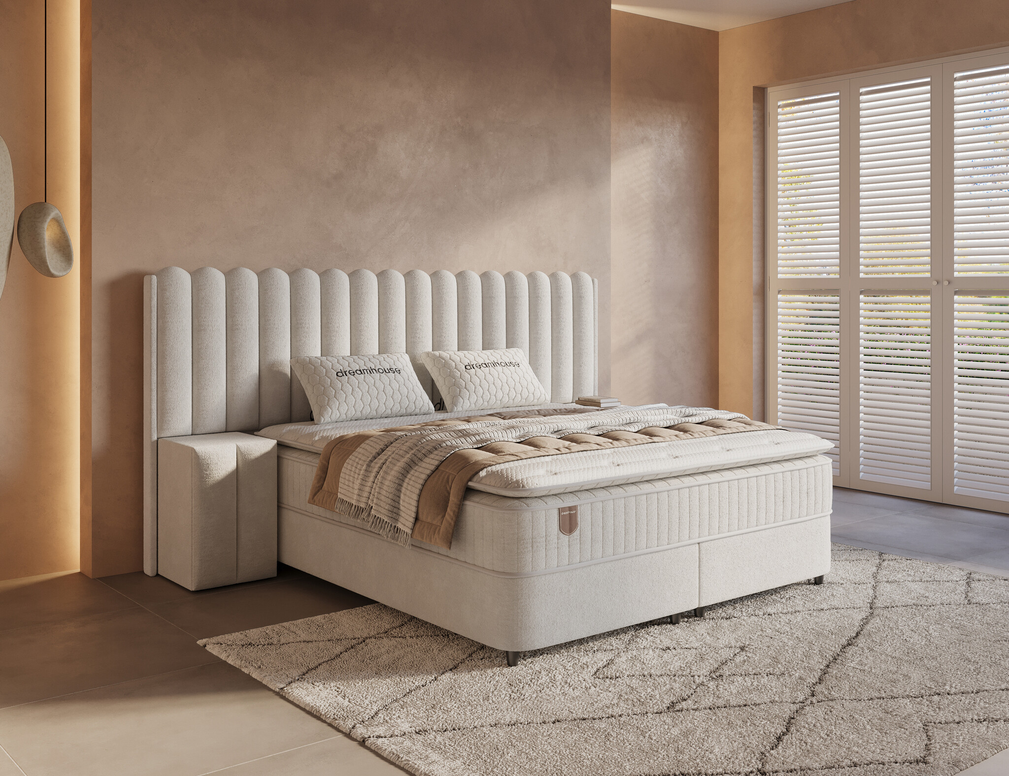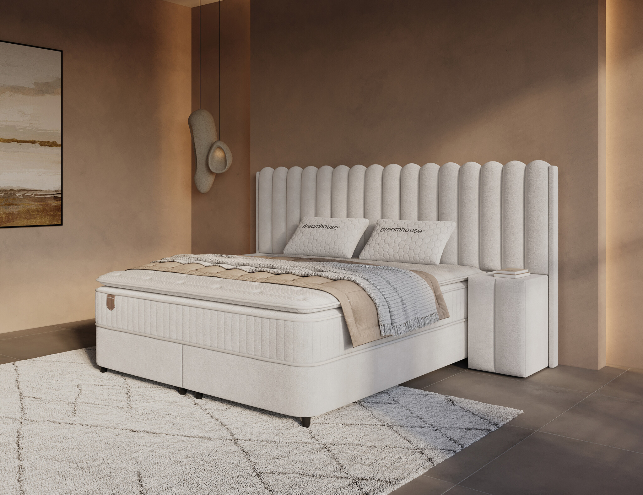 Ervaar ultiem slaapcomfort met Dreamhouse Imperial Beige XL met een stijlvol XL-hoofdbord & royale opbergruimte.