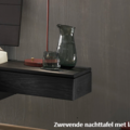 Zwart zwevend Nachttafel met lade met Tip On Functie voor je leeswerk (of zelfs glas wijn!). Deze is gemonteerd aan het bedframe en heeft geen poten. Het zwevende nachtkastje is voorzien van een lade.
