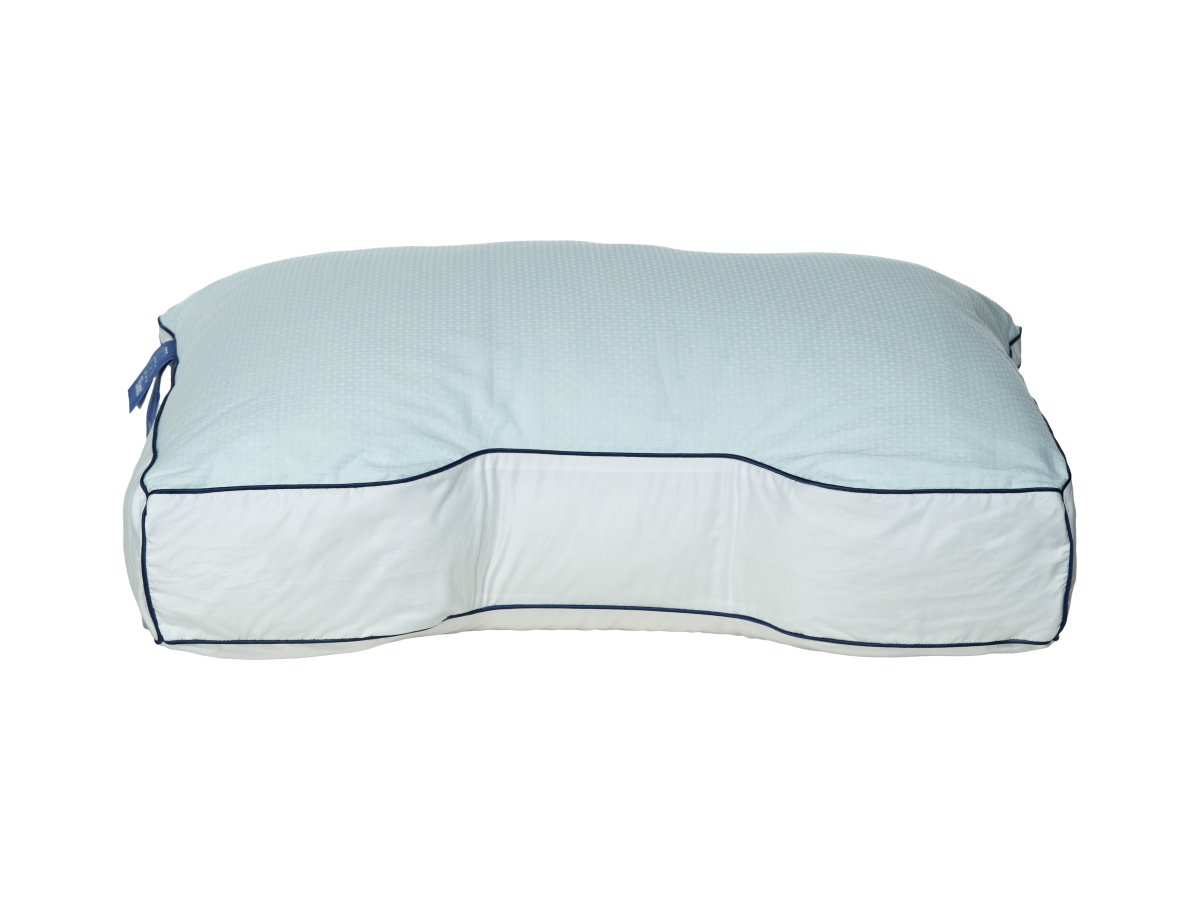 De opstaande rand met schoudercontour zorgt voor de juiste ondersteuning van nek en schouders. Dit helpt klachten voorkomen en bevordert een gezonde slaaphouding.