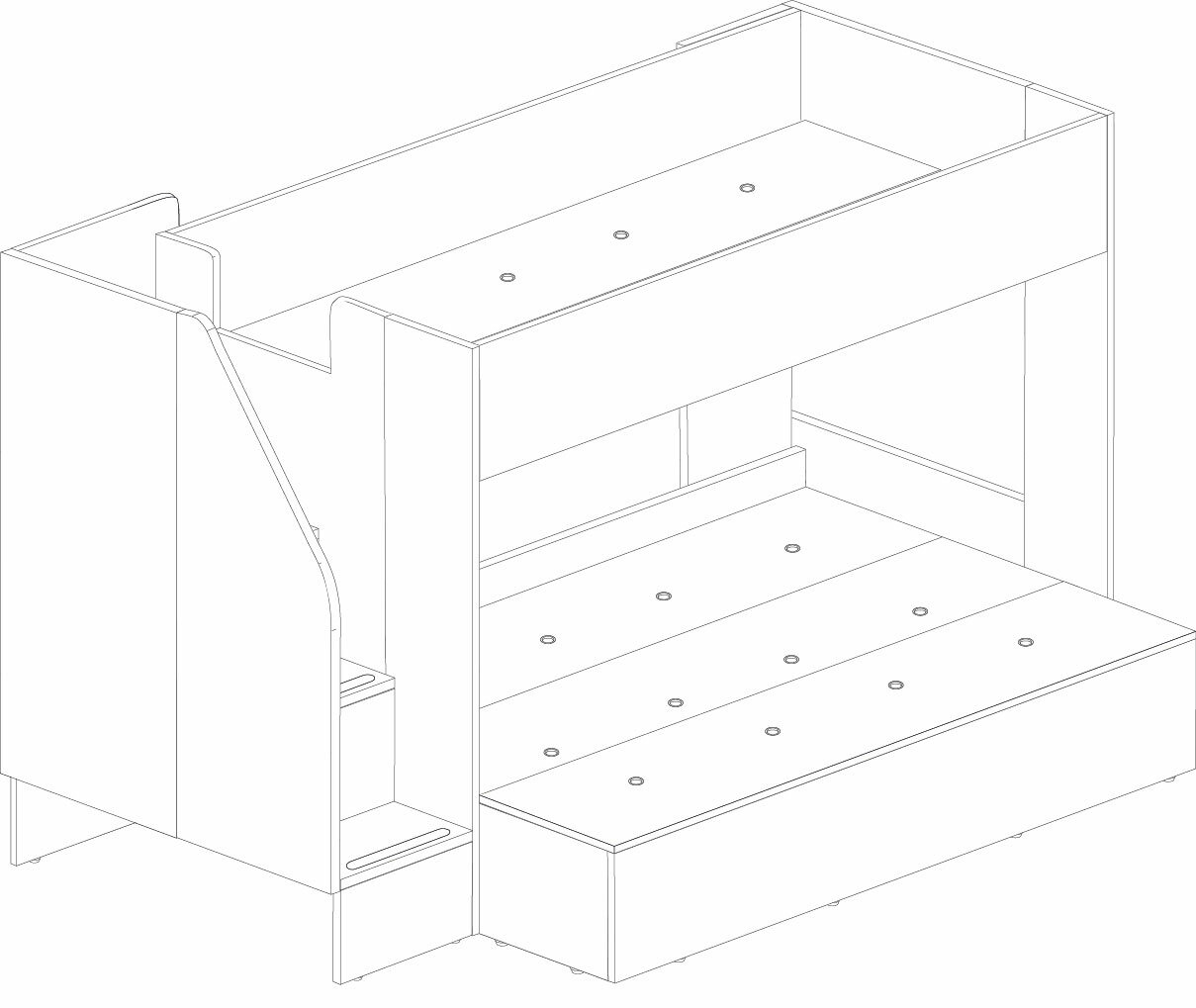 De stevige zijtrap zorgt ervoor dat je kind makkelijk en veilig naar boven klimt. Je kunt de trap zowel links als rechts monteren – handig als je de kamer anders wilt indelen. Extra slim: aan de binnenkant van het bed, naast de trap, zit een open vak met opbergruimte. Zo heb je altijd plek voor knuffels, boeken of speelgoed binnen handbereik.