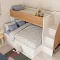 De stevige zijtrap zorgt ervoor dat je kind makkelijk en veilig naar boven klimt. Je kunt de trap zowel links als rechts monteren – handig als je de kamer anders wilt indelen. Extra slim: aan de binnenkant van het bed, naast de trap, zit een open vak met opbergruimte. Zo heb je altijd plek voor knuffels, boeken of speelgoed binnen handbereik.
